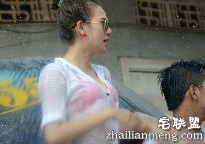 女游客们在泼水节当天活动中,因为天气炎热,身上穿的薄衣服都被泼湿了,女游客们都现得十分尴尬