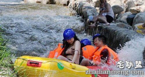 近日在河南南召宝天曼天河,一名女游客耍性感,着比基尼漂流,由于坡陡水急,一个落差下去,女子钻了个“猛子”比基尼带子突然断裂,双乳毕露走光。慌乱之中,该女子急忙用手捂住胸前,,甚是尴尬,引来一片惊呼。