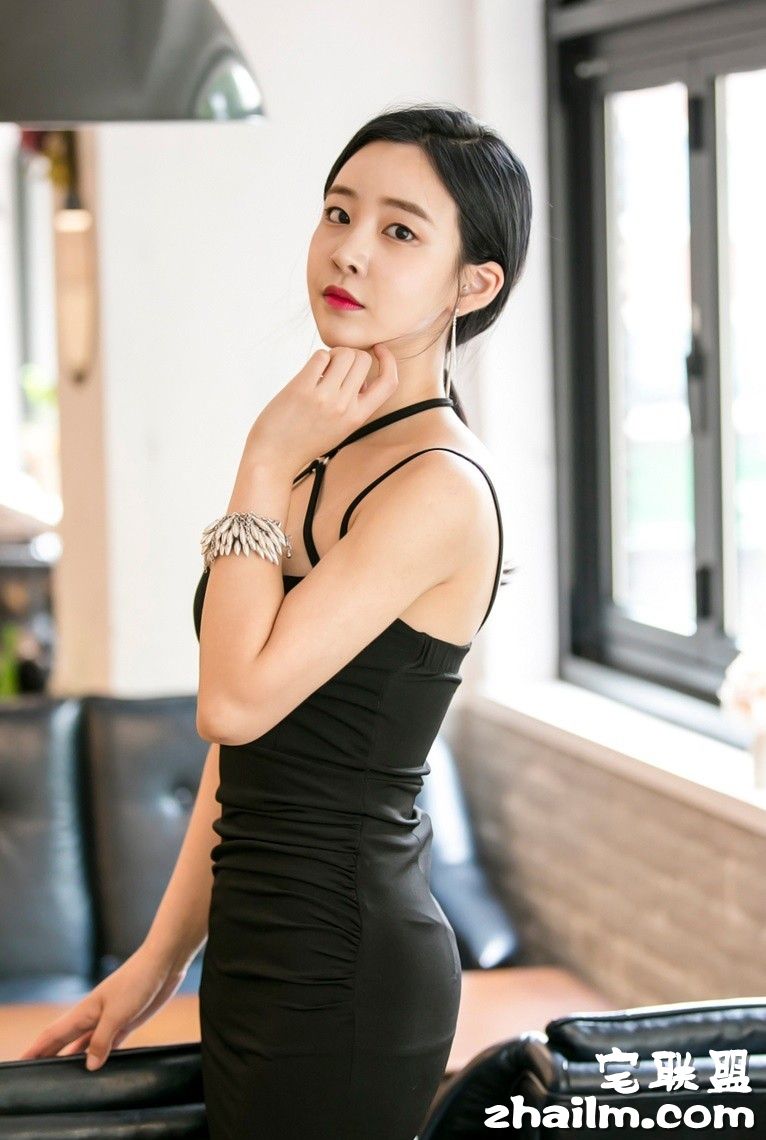 平面模特火辣长腿开叉吊带裙优雅性感养眼写真