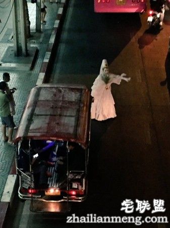 泰国曼谷日前晚间出现这诡异的一幕,一名网友捕捉到“观音”在路边打的,吓坏不少司机大哥,以为自己看到了“鬼”,不过最后终于有个比较大胆的司机,愿意停车载这位“白衣女”。