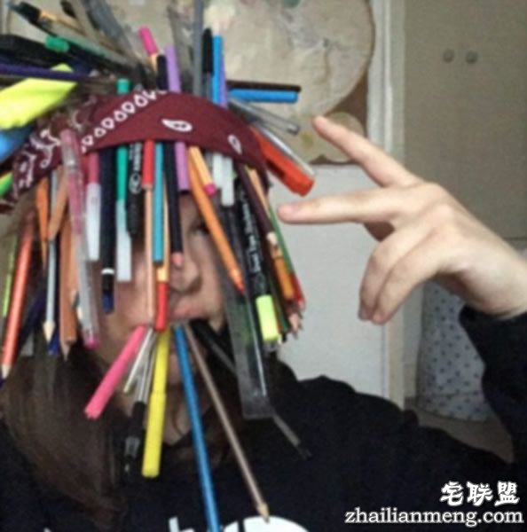 这名16岁的少女Lauryn,日前把头上插着文具的照片放上twitter,接着写道,我决定来看看自己的头上可以放多少支笔,她先放了头上插了7支笔的照片,没想到约莫5分钟之后,她的好友Rebzy 放了一张头部插上14支笔的照片。