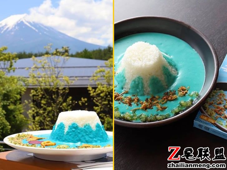 位于小日本山梨县富士山世界遗产中心咖啡厅 Lava Cafe,在2018年4月推出超有创意、售价1000日元的蓝色富士山咖喱饭。