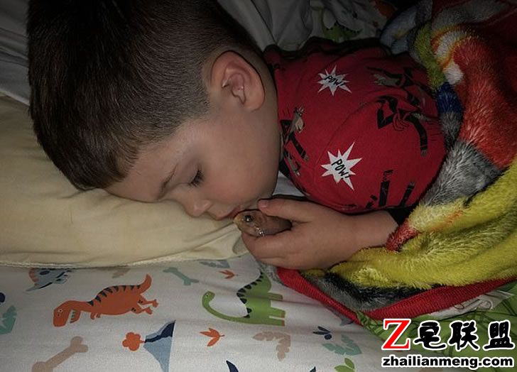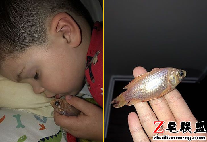 美国一位4岁小男孩 Everett Hamlin 也想跟大人一般呵护他的宠物金鱼,于是把它从鱼缸里抓出来一起睡觉。