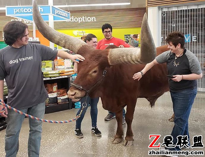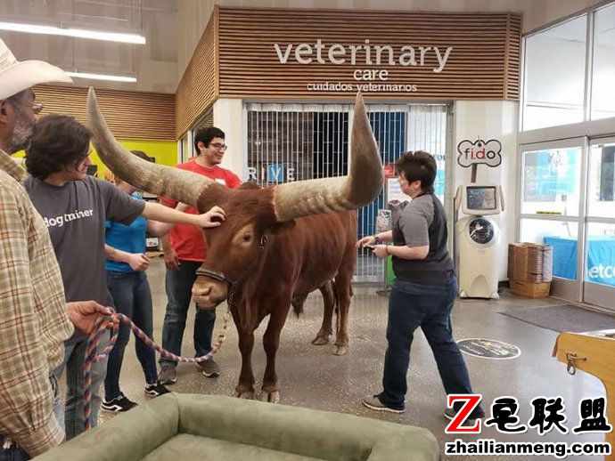 Vincent 表示,长角牛的体积相当庞大,而且可能会在店内乱大便,但当他们来到店门口时,不但没有被阻挡进入,还被店家热情的招待。他惊喜说,Petco 的员工们真的很棒,不但张开双臂欢迎我们,而且态度非常友好且有礼貌,这间 Petco 门市是我目前为止最喜欢的。