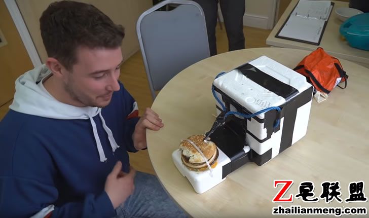 而他也确实做到了,只是最后气象气球漏气,于是汉堡又掉回到地球上的这个球场当中,而汤姆赶到现场后也试吃了汉堡,但他表示这个“去过外太空”的汉堡实在太干了,不像地球上原本的汉堡那样好吃。
