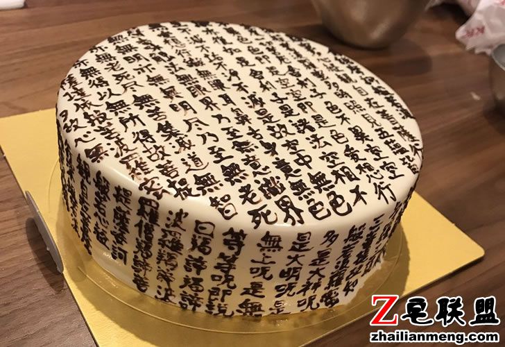 店家花费整整2小时做出的蛋糕上,心经“写好写满”,不只正面,连侧面也满满都是,完全像充满怨念而被“封印”的模样,一切开则是艳红内里,配上外层心经充满诡异感。