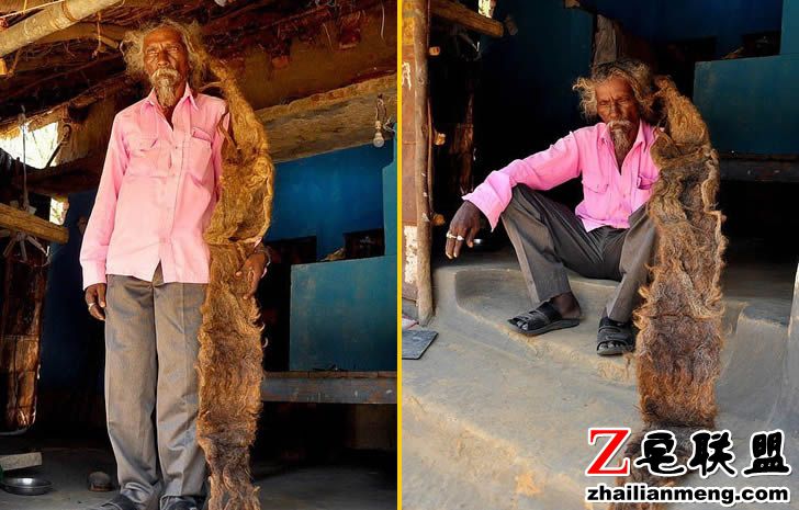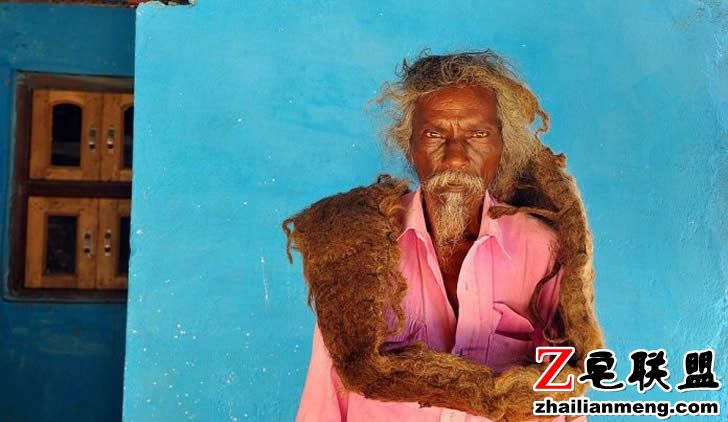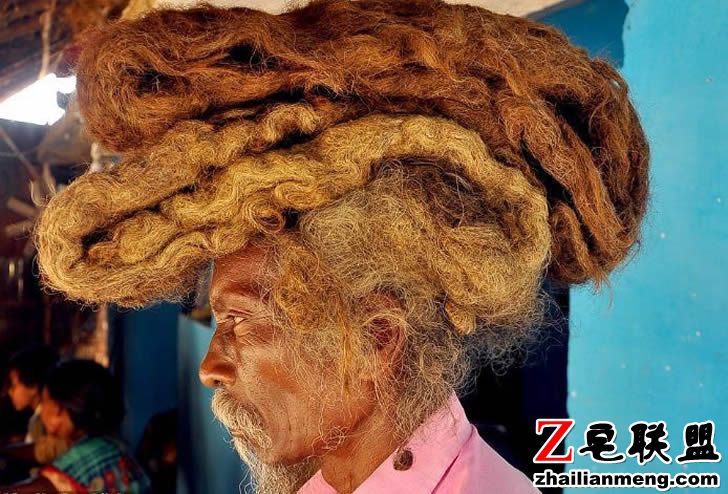 印度一名63岁男子 Sakal Dev Tuddu 住在比哈尔邦曼达达村,他从22岁起就开始留头发,由于某种原因,他整整一年都没有剪过头发。有一天他醒来时,发现自己的头发已经缠成了一绺“jatta”。