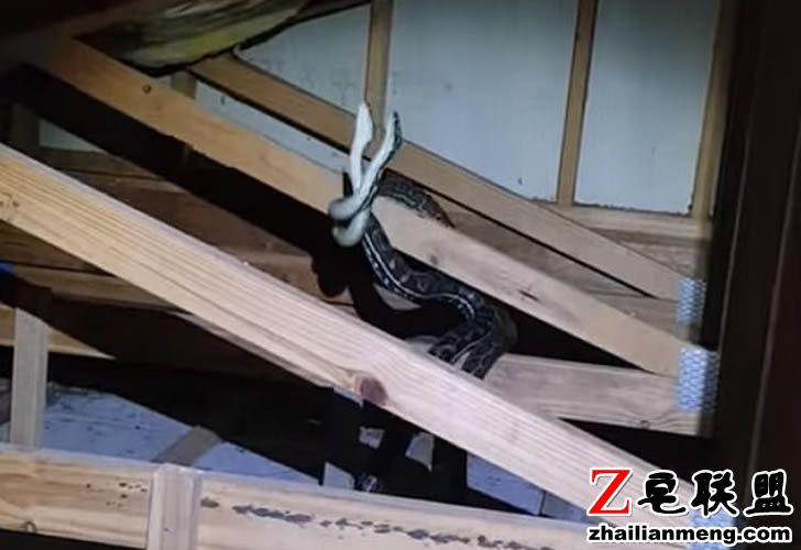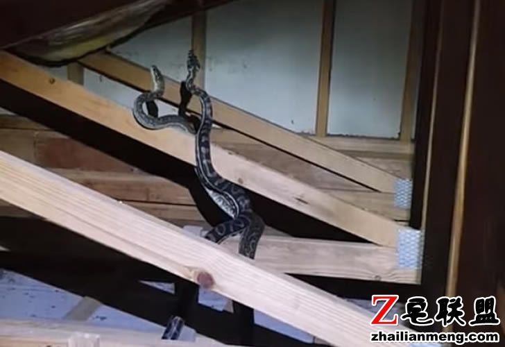 居住在澳大利亚昆士兰州的一户人家突然听见从屋顶传来很大的撞击声,他们怀疑可能有蛇正在屋顶上活动,因此打电话给捕蛇人 Stuart McKenzie 请他来帮忙。