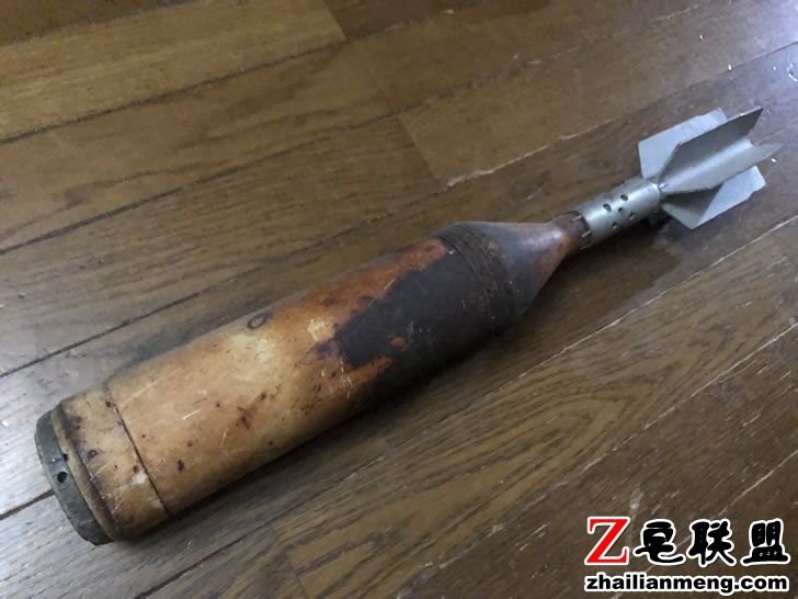 而这个金属物似乎是从阁楼掉下来的,外型呈现圆柱形状,表层有着严重的生锈痕迹,后方则是金属片状尾翼。