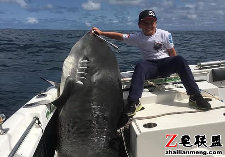 期间在海上放了一排鱼饵,没想到意外引诱到一条虎鲨,Jayden 表示,当时他很紧张,尽管已有钓鱼经验,但仍担心有一点闪失,我希望能捕到它,我不想失去它,我真的很兴奋。