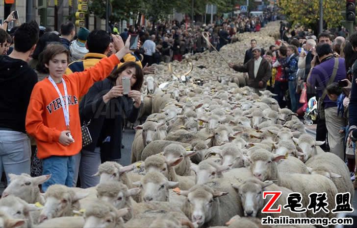 西班牙首都马德里20日举行每年一度的“季节迁徙节”。每年冬天来临前,牧羊人都会带领 Merino 羊群沿着不固定路线,前往南方牧场避寒,只是马德里正好坐落在迁徙路线上。
