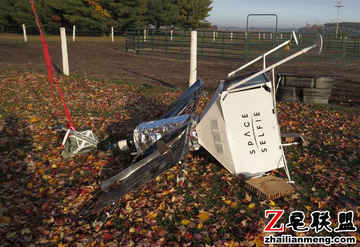 她看到一个疑似是卫星的四脚太空装置,顶部装有太阳能板还有三星标志,盒内则装有2台大相机和一台三星手机,上面写着“Space selfie”。