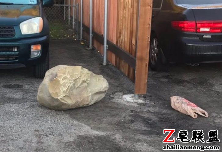 美国加州 Isla Vista California 一名地质学家 Melissa Scruggs 的车库前被隔壁邻居放了一颗大石头,因此无法开车出门。