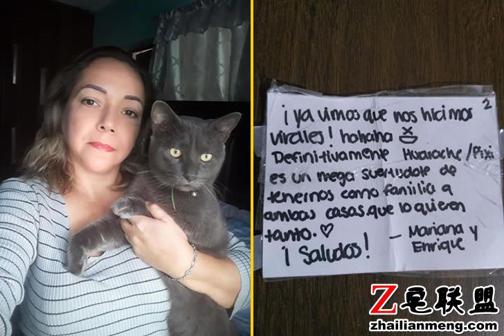 没想到,Mary 的怀疑是正确的,另一家的主人也通过小便条回复了 Mary,告诉她,在他家,猫咪名叫“Huarache”,很显然这喵星人有两个家,过着安逸的“双重生活”。