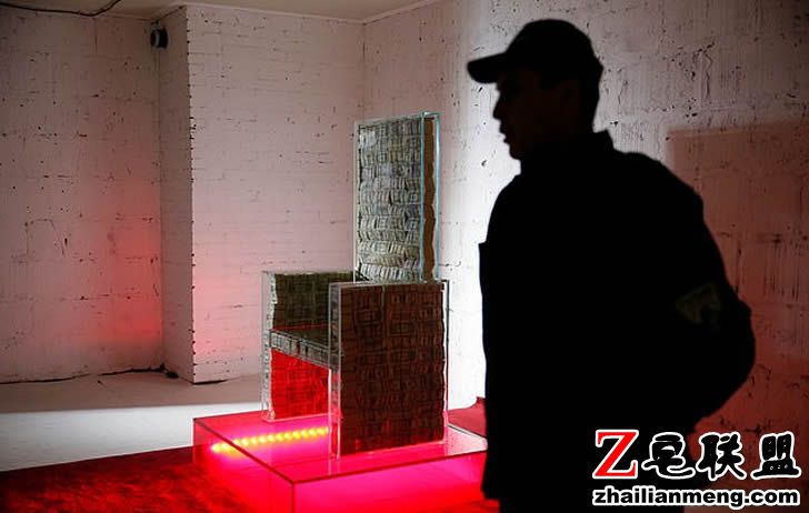 俄罗斯艺术家 Alexey Sergienko 与俄罗斯富豪 Igor Rybakov 合作,打造出椅子里塞满100万美元的艺术品“Money throne x10”(金钱宝座x10)。
