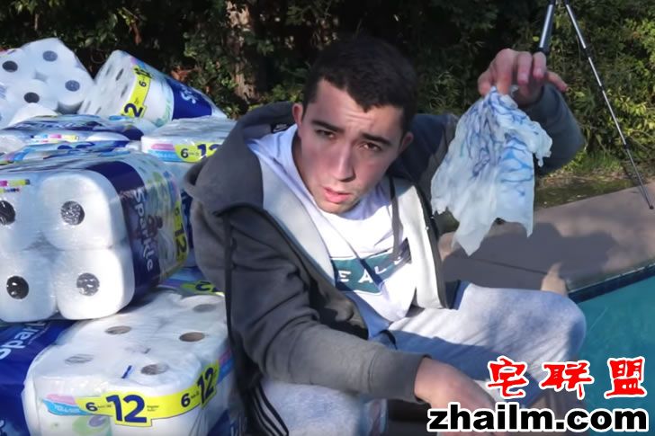 澳大利亚男子 Tyler Oliveira 想如果纸巾可以吸水,那究竟要用多少纸巾才能将整个泳池的水吸干呢?