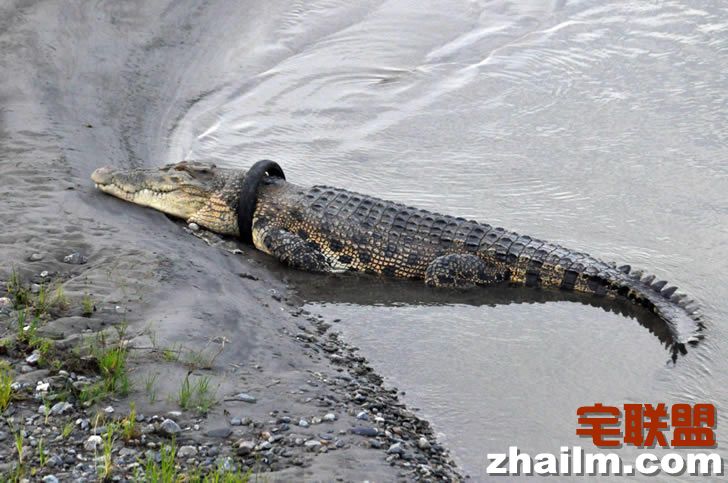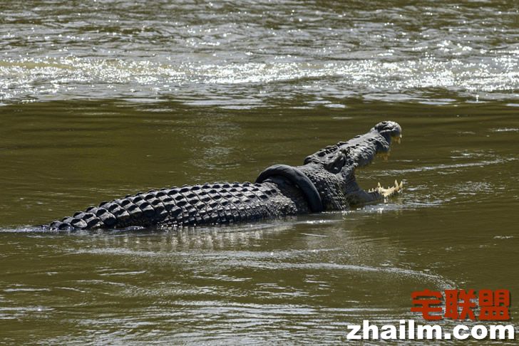 在印度尼西亚自2016年以来,这条成年鳄鱼的脖子上一直戴着一个摩托车轮胎,但苏拉威西岛中部首府帕鲁的有关部门很担心,最终可能会将这条鳄鱼勒死,所以他们向公众寻求帮助。