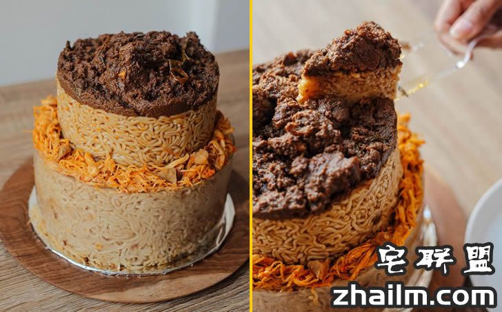 印尼雅加达的 Tot Aw(awesome)面包房最近吸引了很多人的注意,而这一切都要归功于他们与众不同的蛋糕。它们不是用甜奶油和配料做成的,而是用一层一层方便面做的。