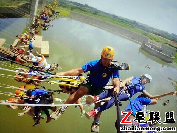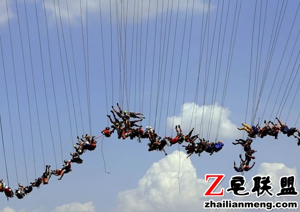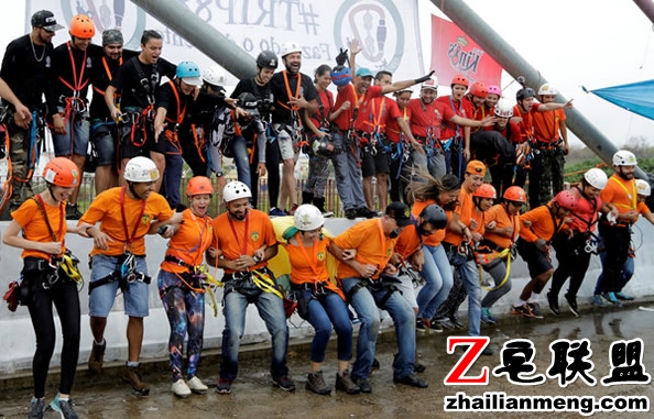 这场百人蹦极活动,共使用超过20公里的绳索及1000组护具。
