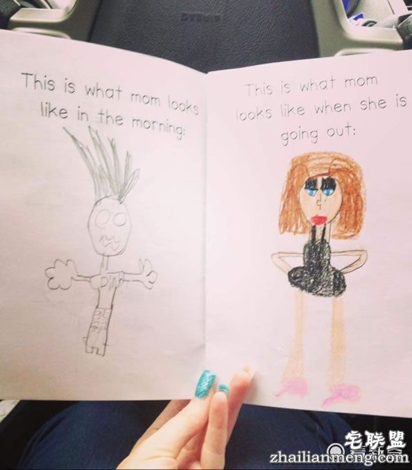 一位小女孩用一张手绘画,画出妈妈出门前和出门后的样子,秒解女人一辈子的特性。这位才6岁的小女孩画出妈妈的一天中的不同行为,而分界点就是出门前后,左图为妈妈刚起床的样子,女孩把妈妈画得披头散发、眼睛无神还穿著相当休闲。