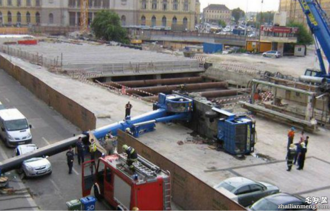 原来就在男子进超市的空档,旁边工地的起重机因受力不均匀,所以倾倒砸了下来,刚好砸在男子的车身上,从图中看到“受害者”惨不忍睹啊!