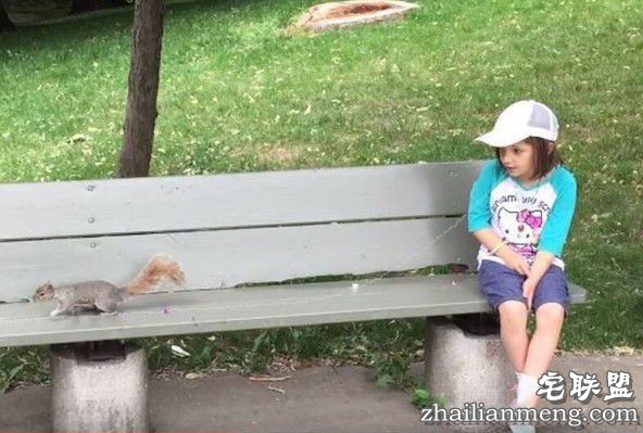 画面中,米拉坐在公园的长椅上,她摇摇欲坠的牙齿上绑着一条长线,另一端则捆着燕麦脆榖片。过一阵子,几只松鼠闻到香味,蹦蹦跳跳跑到椅子上,先是搓了搓手,然后一口咬走食物。米拉趁机张开大嘴,牙齿跟着掉落。弗瑞海特大赞,这只松鼠拔牙的精准度,就像是牙医。