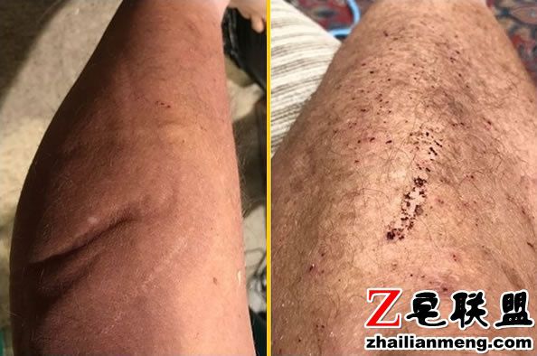 自己时常在网上发文,自己与外星人打架后受伤的地方,甚至还有一张武士刀与疑似外星人血迹的照片。