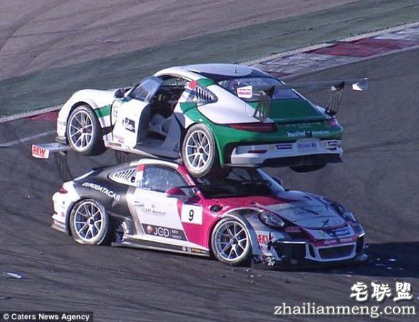西班牙的纳瓦拉赛道时捷卡雷拉杯比赛,大约有20多辆车在赛道上飞奔,一辆保时捷在拐弯时被另一辆车撞倒尾部后直接来了一个180度的大转弯,正好后面的车开过来直接迎面相撞之后,一辆车就直接开到了另一辆车的顶上面,这太戏剧了吧!