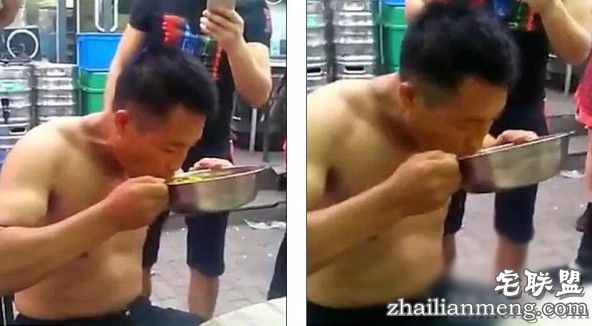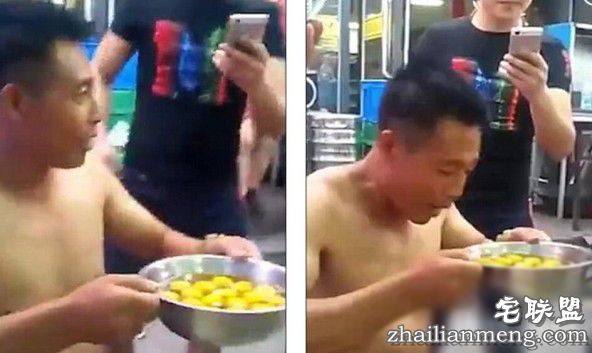 一光膀子的男子为了赢得餐馆免费就餐一口气喝下了20个生鸡蛋,不知道这样做到底值不值得?