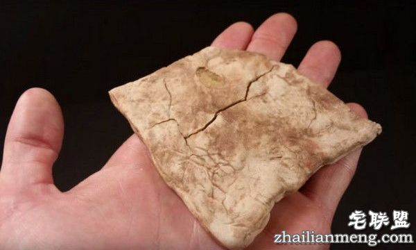登登登登,主角登场!小哥说这些美国内战时期的饼干,是从密苏里州某个军营的遗址里挖出来的,感觉这块饼干也挺硬的啊,不知道会不会崩坏牙齿