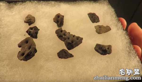 首先找出来的是这些像蜂窝煤一样的饼干,明显已经碳化了,像化石一样坚硬,我们小哥可是会挑剔的,所以他试吃的并不是这些。