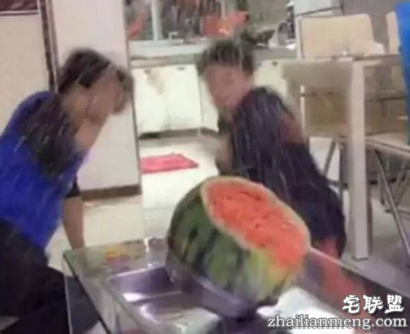 嗯……很认真的样子,角度也选取的很好。然后。。就在这个时候。。。西瓜爆了!