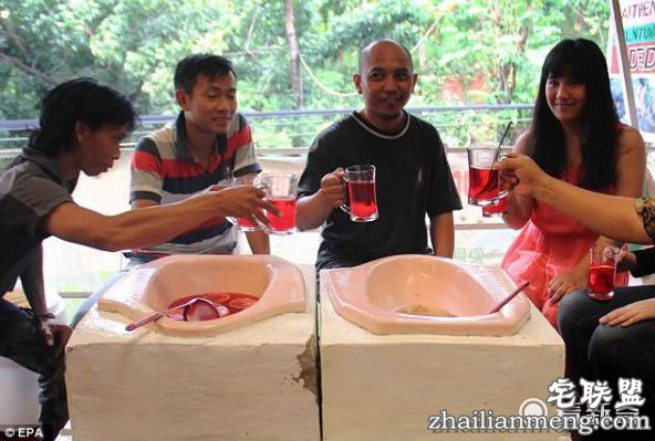 其实厕所主题,便便主题的餐厅已经不是什么新鲜事了,但是印尼最近开的一家厕所主题咖啡馆,却令人感觉超级重口味!座椅都是马桶,盛汤的盆也变成了便池,看着挺恶心的,来体验的人还不少。
