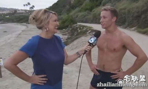 美国加州新闻台一名记者Wendy Burch 在海边采访一位帅哥路人时,小鹿乱撞,心花朵朵开,更直接在镜头前大胆示爱。记者Wendy 在海边进行一个关于鲨鱼的采访直播,随意找了一名刚冲完浪的男子,问他对于鲨鱼的看法。