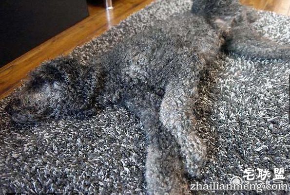 很多人家中都铺有地毯,如果毛小孩的毛色与地毯很相近,那就麻烦了。英国34岁女子DebLythgoe家中就有一只叫做Stanley的黑灰色贵宾犬。那天她与未婚夫PeteChisnall逛街时,发现了一张与爱犬毛色非常相近的地毯。他们觉得很有趣,立刻将地毯买回家,没想到最后竟会笑到滚地。