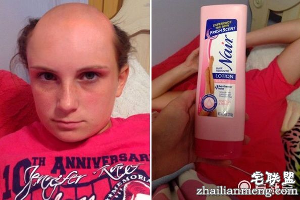 原来妹子误把Nair 脱毛膏当成洗发水拿来洗头了,唉~你看这发型也真是醉了呢,头顶都光光的~
