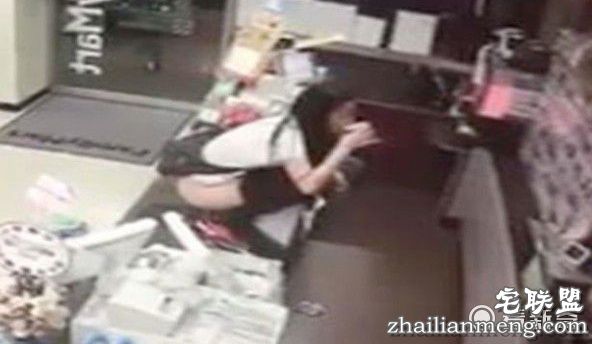 台湾南部一个晚上高雄市一家连锁商店来了一位女子给商店工作人员说她想使用厕所,工作人员拒绝了她使用店内厕所后该女子爬上柜台开始脱裤子要小便,员工欲制止。