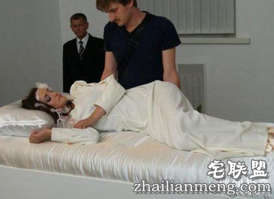 在展览会上,每张床上躺着一位睡美人,哪位男孩如果轻轻一吻,将女孩吻醒了,就可以娶回家。到场者不能是已婚者,离异者可进入。