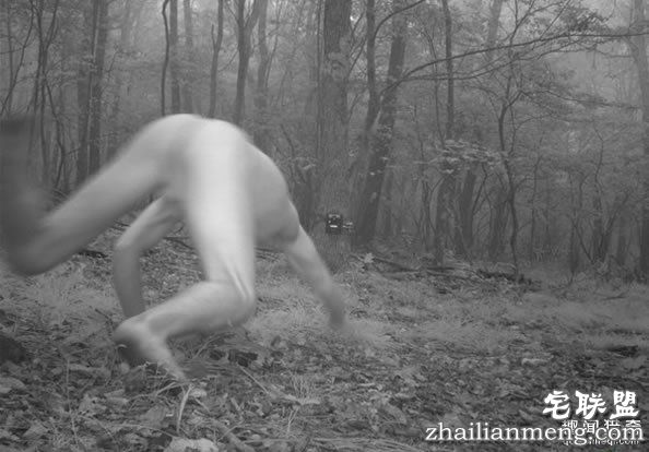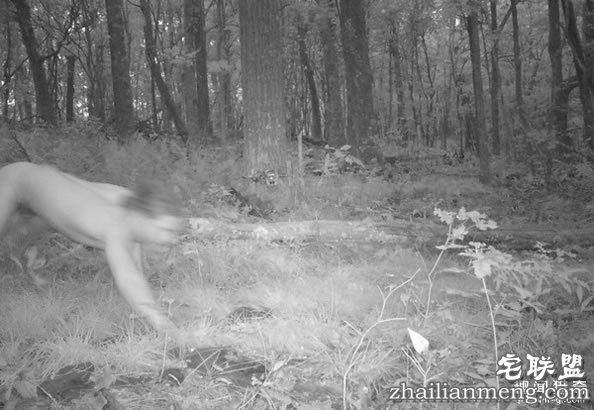 影像中的这位“全裸野人”,看得出来有着人类的四肢,虽然是趴地爬行,但从模糊影像中,可看出有头发与脸。