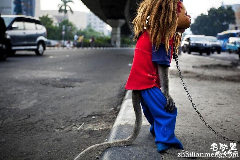 印尼的一位职业摄影师,跟随这些耍猴人记录并拍摄了他们沿街表演的生活。