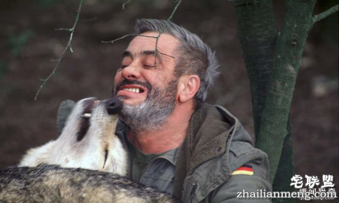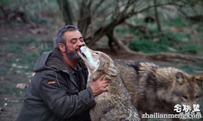 德国男子维尔纳-弗洛恩德是个不折不扣的“狼人”,他养了29头狼,经常与狼嘴对嘴“亲吻”。