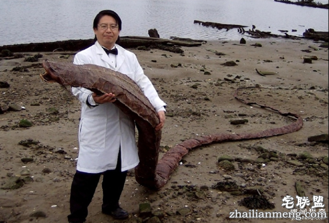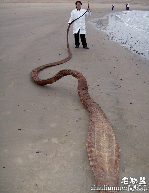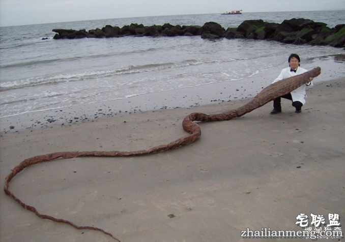 由此可见,这条不明巨型条状物已去多时,只剩下干干的躯壳。男子还测量了这尸体的长度,大约十几米长。从这尸体的外型可见,它长相怪异,不像是海蛇的生物。难道这是史前怪物?这让男子充满疑惑。