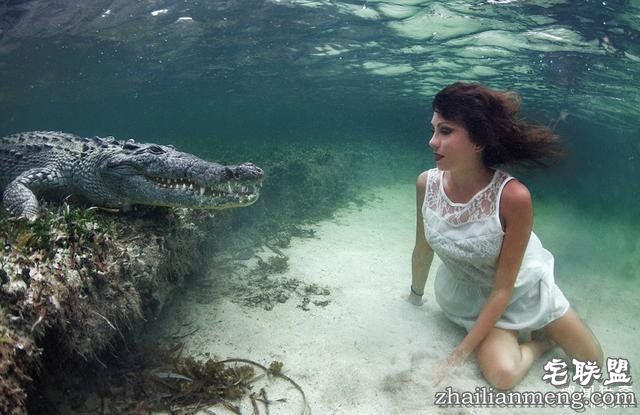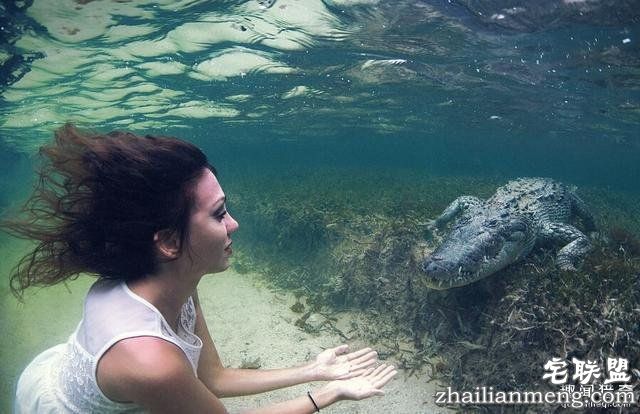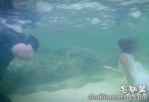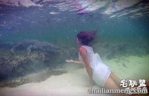 要不说外国友人就是胆子大,就连美女也都是胆量惊人,近日,一外国美女竟然体验与鳄鱼在水下同游,真真好胆量!