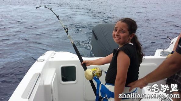 Makayla 好不容易把鱼弄上船终于松了一口气,我全身都是汗,筋疲力尽了,但是好开心。她从5岁开始和爸爸一起钓鱼,非常有兴趣的她已经迫不及待再打破纪录,我还想要试试看打破鲔鱼的纪录。