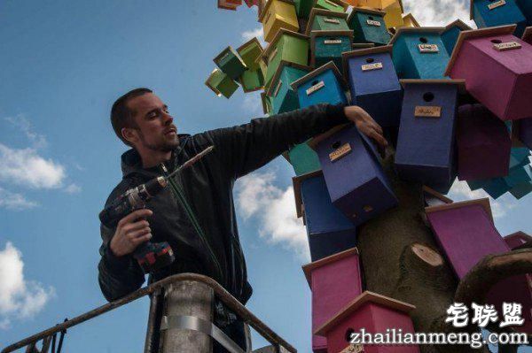 丹麦小伙托马斯在过去7年的时间里,为世界各地的小鸟们搭建了3500多个木质鸟窝。身为一名艺术家,他一直坚信人类应该和城市中的鸟儿们和谐共处。为了让城市里的鸟儿们有处栖身,他开始了这项建鸟窝的计划。