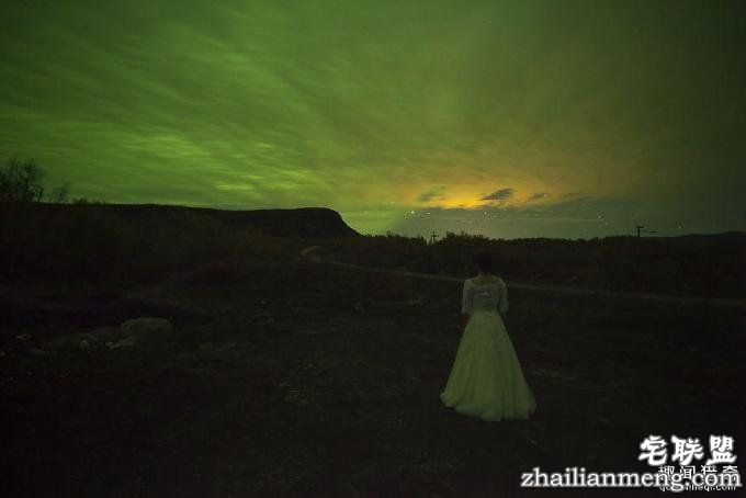 图为望着北极光的新娘,这对新婚夫妻捕捉到了很多难得一见的景象。