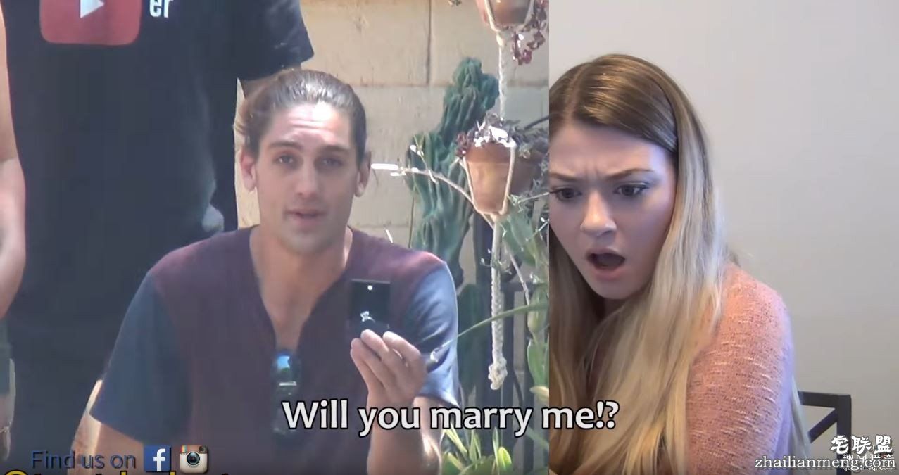 过了一阵子,两人在房里也差不多玩事了(是吗?),这时男主角伙同骚妹跟剧组一起走出家门,然后突然对着镜头向女友喊话,「你愿意嫁给我吗?」
