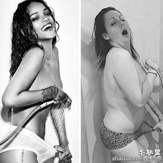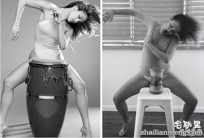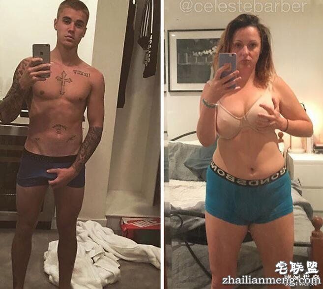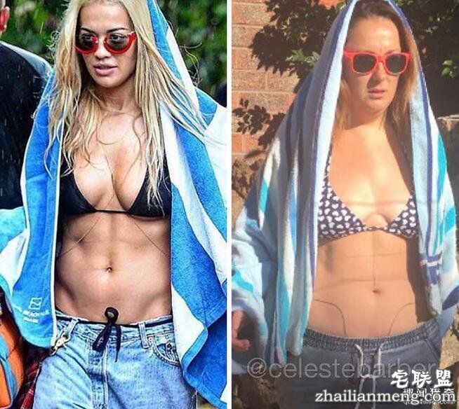 Celeste Barber说,拍这张模仿名人的恶搞照片,主要是想告诉大家,你就算没六块肌,无法摆出高难度的姿势,其实也没什么大不了的!