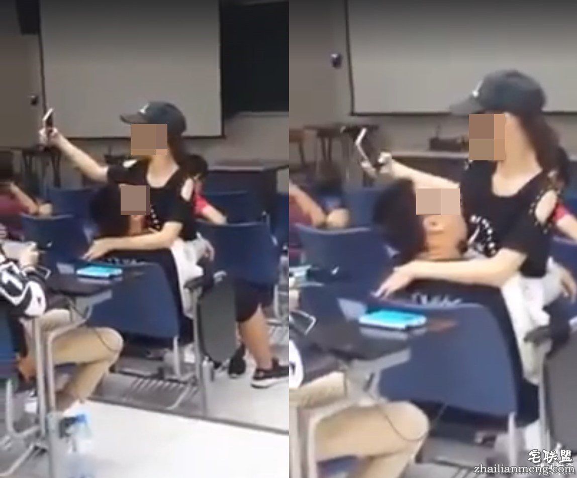 「同学现在在上课喔!」目击同学边拍影片边说,「这个女生刚刚坐在那个男生腿上,然后一直摇一直摇…虽然说不是上课打炮,但是…」;她见到女学生又坐上去,直呼「我快受不了了…」