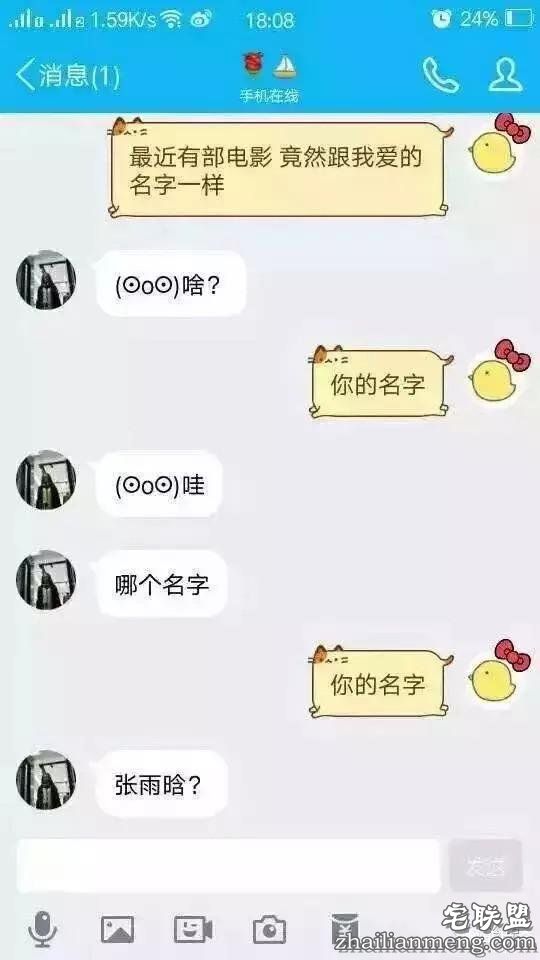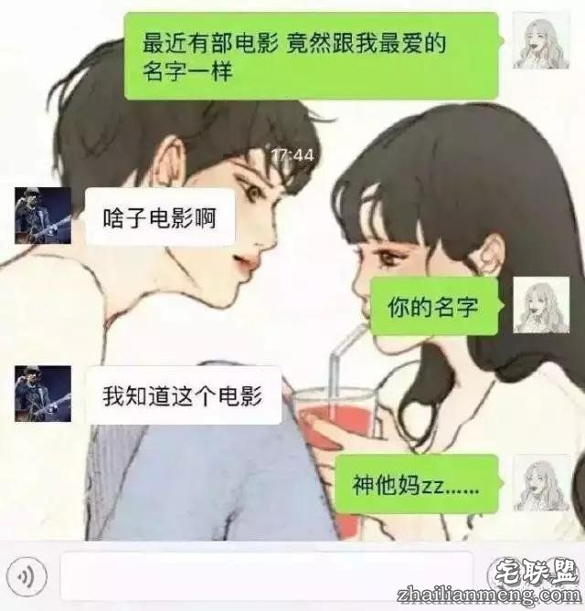想象中的套路是这样的:“最近有部电影,竟然跟我最爱的名字一样。”“什么电影?”“你的名字。”rkv宅联盟 - 宅男福利社 现实中是这样的rkv宅联盟 - 宅男福利社 你哭着对我说,童话里都是骗人的!rkv宅联盟 - 宅男福利社 推荐使用Chrome,Firefox等高端浏览器无障碍浏览,请记住网址发布页(www.zlm8.com),转载请注明:宅联盟 - 宅男福利社 » 当对方完全不按照套路出牌的时候....! 喜欢 ()